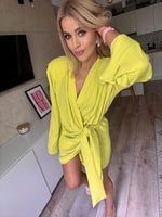 Add a touch of chic elegance to your wardrobe with this one-size wrap dress, available in Hot Pink, Lime Yellow, and Orange. Designed with a flattering draped silhouette, long flowy sleeves, and a tie waist, this dress is perfect for making a statement while staying effortlessly comfortable. Whether styled with heels for a night out or sandals for a casual look, it’s a versatile piece that brings vibrance to any occasion. This dress is all about bold colors, feminine draping, and modern sophistication—perfect for summer parties, vacations, or a night on the town.