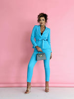 Step into effortless sophistication with this tailored blue suit set, designed for women who love a bold yet elegant look. The structured blazer comes with a waist tie belt, adding shape and polish to your silhouette, while the slim-fit trousers provide a sleek, elongating effect. Perfect for business meetings, formal events, or a chic evening out, this vibrant blue suit ensures you stand out with confidence and style.