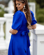Elevate your wardrobe with our Short Sleeve A Line Midi Dress! Enjoy the ease of short sleeves and the flattering silhouette of an A line design. The tie waistline accentuates your figure, making this dress a versatile and stylish choice for any occasion. Make a statement with this must-have piece!