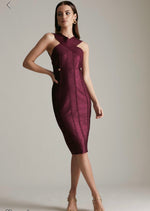 Experience sophistication and elegance with our midi bandage dress. The criss cross design is both unique and flattering, while the zipper in the back adds a touch of luxury. Perfect for any formal occasion, this dress will make you feel elegant and exclusive.