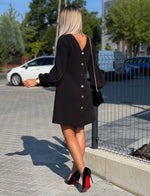Effortlessly elegant, our Long Sleeve Back Buttons Dress is a must-have for any fashionista. Its long sleeves and back button design exude sophistication, while its mini length makes it perfect for any occasion. Own the room in this versatile and stylish dress.