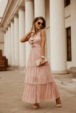 Experience elegance and style with our Sleeveless Lace Top Layered Tulle Bow Tie Maxi Dress! With its delicate lace top, layered tulle design, and charming bow tie detail, this dress exudes sophistication. Perfect for any special occasion, make a statement and turn heads in this stunning maxi dress.