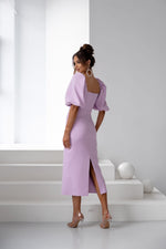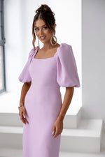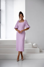 This elegant midi dress is designed to flatter with clean lines, soft structure, and a timeless silhouette. Featuring a refined square neckline and softly puffed sleeves, it blends classic femininity with modern sophistication. The fitted bodice highlights the waist, while the midi-length skirt creates a graceful, elongating effect. Crafted from a smooth, structured fabric, this dress is perfect for weddings, communions, baptisms, formal events, or any occasion where effortless elegance is key.