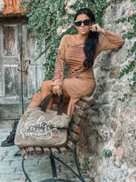 Indulge in sophistication with our 3/4 sleeve dress featuring decorative cut outs. From mini to midi to maxi, this versatile dress is perfect for any occasion, lending a touch of elegance to your casual look. Elevate your style with a dress that's both fashionable and functional.