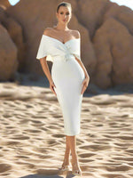 - Off The Shoulder Elegant Body Con Cocktail Party Midi Summer Dress