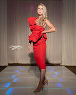 Experience the ultimate in sophistication and style with our One Shoulder Body Con Scuba Cocktail Midi Dress. The one shoulder design adds a touch of elegance, while the body con fit accentuates your curves. Made with scuba fabric, this dress is both comfortable and flattering. Perfect for any cocktail event.
