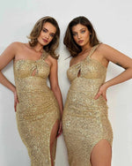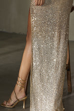 - One Shoulder Sequin Leg Split Midi Maxi Dress