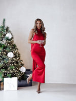 Experience the luxurious feel of satin with our Body Con Halter Bow Tie Midi Maxi Dress. This dress will hug your curves and accentuate your silhouette, while the halter neckline and bow tie add a touch of elegance. Perfect for any special occasion, this dress will make you feel confident and beautiful!