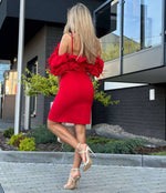 - Straps Off The Shoulder Ostrich Feather Mini Midi Elegant Dress