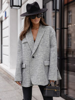 Effortlessly cool and casually tailored, the Grey Cotton Oversized Blazer delivers timeless style with a contemporary twist. Made from breathable cotton with a soft, structured hand-feel, this blazer features an intentionally oversized fit, two front flap pockets, and a split back hem that adds movement and shape.