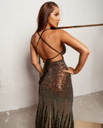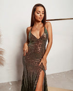 - Sexy V Neckline Body Con Cocktail Club Dress Multicolored Chameleon Sequin Side Slit Party Maxi Dress