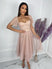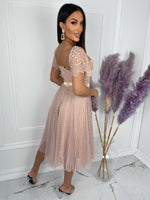 - Short Sleeve Sweetheart Neckline A Line Lace Top Polka Dot Tulle Midi Dress