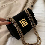 Elevate your accessory game with these luxurious velvet clutches, available in classic black and striking red. Featuring a structured silhouette, gold chain-link straps, and an oversized geometric buckle closure, these bags deliver elegance with an edge. Perfect for formal evenings or adding flair to casual chic outfits. These clutches are timeless, pairing opulence with functionality for all your day-to-night needs.