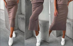 Elevate your everyday chic with this high-waist bodycon midi skirt, designed to flatter your silhouette with a sleek, fitted cut. Featuring a comfortable elastic waistband and a back slit for ease of movement, this skirt transitions seamlessly from office to evening wear. Available in five versatile colors – red, fango, gray, navy, and burgundy – it’s a timeless wardrobe essential.