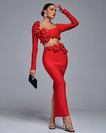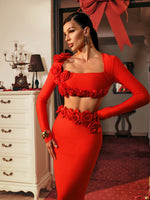 Unleash your inner confidence with our Body Con Flower Bandage Two Piece Set. This stunning outfit features a flattering body con fit and a beautiful flower design, making it the perfect choice for any party or night out. Stand out and feel amazing in this must-have set.