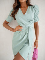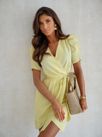 Upgrade your wardrobe with our Short Sleeve V Neck Ruching Front Mini Dress! This dress features a stylish v-neck and ruching detail on the front, creating a flattering silhouette. Perfect for any occasion, this dress is sure to turn heads and make you feel confident and beautiful!