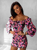- Tied Front Puff Sleeve Floral Mini Summer Dress
