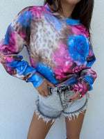 Make a statement with this eye-catching long sleeve top, blending fierce leopard print with vibrant blue and pink florals. Perfect for pairing with denim, skirts, or tailored trousers, this versatile piece takes you from casual outings to stylish evenings effortlessly. This is a must-have for fashion lovers who embrace bold prints and chic comfort!