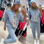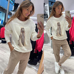 Add a playful twist to your cozy days with our Dog Rhinestone Noodie Sweater, where comfort meets quirky charm. This relaxed-fit sweatshirt features an irresistibly chic dog graphic — complete with a rhinestone necktie and hat for just the right amount of sparkle. Designed with a classic crew neckline, long sleeves, and soft stretch fabric, it's perfect for lounging, errands, or casual coffee dates.