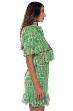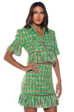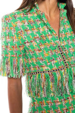 - Fringe Tweed Mini Skirt Matching Suit Set