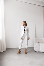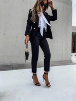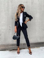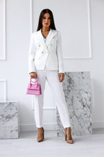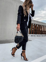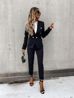 Double Breasted Blazer with Gold Buttons & Cigarette-Leg Pants Suit