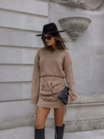 Elevate your style with this sophisticated matching set. The long sleeve top and mini skirt feature a luxurious waffle pattern, adorned with delicate flower accents. Perfect for any occasion, this set exudes elegance and exclusivity. Step into a world of art and fashion with this must-have ensemble.