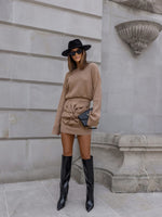 - Long Sleeve Mini Skirt Waffle Pattern Flower Decor Matching Set