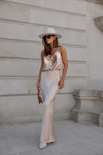 Elevate your wardrobe with our Satin Skirt Set. This luxurious set features a beautifully tailored satin blouse and skirt in a matching design, perfect for any occasion. The intricate sequin detailing on the shirt adds a touch of sophistication while the satin creates a beautiful texture. Indulge in elegance with this exclusive set.