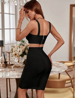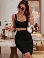 Command attention in this sleek and sculpting two-piece bodycon set. With its flattering scoop-neck crop top and figure-hugging high-waisted skirt, this matching ensemble is your go-to for bold, confident dressing. This versatile and vibrant set is perfect for dinner dates, rooftop drinks, or girls’ night out. Add heels and gold accents to finish the look.