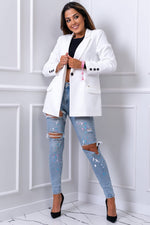 - Long Sleeve One Button Blazer Wide Leg Pants Black Decorative Buttons
