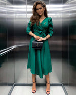 Channel your inner elegance in our Emily Midi Wrap Dress! Featuring a classic midi length and a flattering wrap design, this dress exudes sophistication. The decorative sleeve adds a touch of charm, making it the perfect choice for any formal occasion. Elevate your style game with this elegant dress.