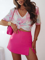 Step into feminine flair with our Chic Slit-Front Mini Skirt, available in two dreamy shades: soft Blush Pink and bold Candy Pink. Featuring a sleek high-waisted fit and a subtle side slit for a playful twist, this skirt is made to flatter your curves and elevate your day-to-night looks. Pair it with a floral blouse for brunch or a crop top and blazer for a chic evening vibe.