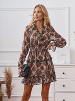 Step into elegance with this Paisley Print Ruffle Mini Dress, crafted in Poland with exquisite attention to detail. Designed with a flattering elastic waistline, layered ruffled skirt, and a delicate ruffled neckline, this dress blends bohemian charm with timeless femininity. The lightweight, flowy fabric ensures comfort while maintaining a chic, polished look – perfect for daytime outings, dinners, or special occasions.