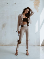 Elevate your wardrobe with these sleek and structured leather leggings. Designed to contour your silhouette, they combine the bold edge of faux leather with a refined fit. Featuring a subtle seam detail down the leg and a high-rise waistband for a polished look that transitions seamlessly from day to night.