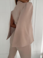 Make a statement with the Cape-Sleeve Tailored Jumpsuit, where bold design meets refined tailoring. This one-piece stuns with a sharp double-breasted blazer bodice, draped cape sleeves, and sleek tapered legs that elongate your silhouette. Available in four standout shades—from bold Hot Pink to refined Nude—this jumpsuit is your new go-to for commanding presence at formal events, evenings out, or elevated fashion moments.