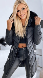 Stay warm and stylish with our Modern Puffer Jacket! This jacket features a sleek puffer design, a detachable hood, a convenient belt to enhance your figure, and pockets for all your essentials. Perfect for braving the cold while making a fashion statement.