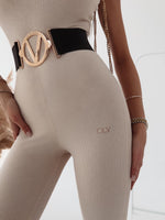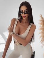 Sculpted, sleek, and endlessly wearable—the Ribbed Knit Bodycon Jumpsuit is your new day-to-night favorite. Designed in a soft, stretch ribbed fabric, this figure-hugging one-piece features a scoop neckline, tapered legs, and a contour-enhancing fit. The sleeveless cut and neutral sand tone make it a versatile layering essential or a bold standalone look.