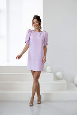 Effortlessly feminine with a modern silhouette, this elegant mini dress is designed to flatter with its clean lines and statement puff sleeves. The softly structured fabric drapes beautifully, creating a polished look that transitions seamlessly from daytime celebrations to evening events. Available in Lavender and Powder Pink, this piece is perfect for weddings, showers, cocktail parties, or elevated everyday wear.