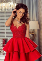 - V Neck Spaghetti Strap A Line Scuba Formal Mini Dress