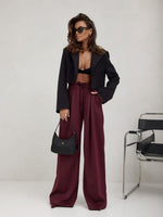 Make a bold, elegant statement with these Burgundy Wide Leg Pants, tailored for fluid movement and elevated ease. Featuring a flattering high-rise waistband with an adjustable tie, these pants create a long, lean silhouette that flows effortlessly from day to night. The rich burgundy hue adds depth and sophistication, while the wide-leg cut exudes modern power and polish.