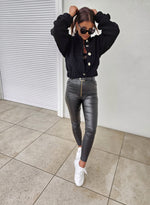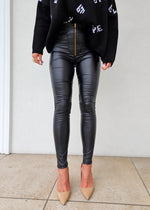 Elevate your edgy-chic wardrobe with these High Rise Leather Zipper Pants. Crafted in sleek black faux leather, they feature a flattering high-waisted silhouette and a bold exposed front zipper for a statement finish. The figure-hugging fit elongates the legs, making them perfect for pairing with heels or boots for an effortlessly sexy and modern look.